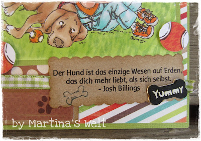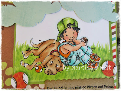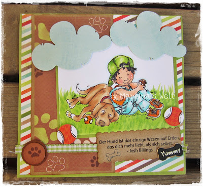 I found quite too many great images by Mo Manning! I could not decide, which one I should take, but thenI took this Digi shown above as the doggie reminded me a lot of our sadly already passed away doggie Sandy. I coloured the dog in her fur colours.